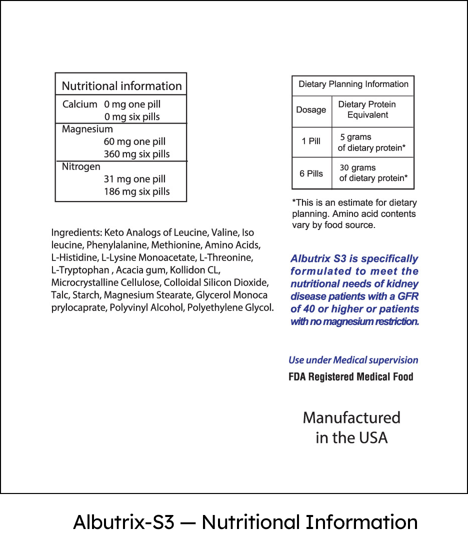 - Albutrix S3 and S4 are guaranteed to contain the highest amount of magnesium of any keto acid analog for kidney patients.