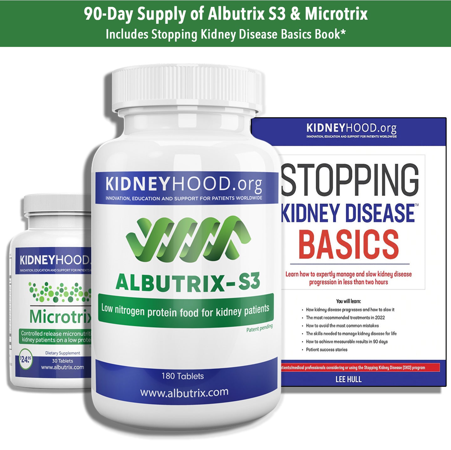 - The integrated combination of the Kidneyhood.org very low protein diet, Albutrix and Microtrix was proven effective in clinical studies